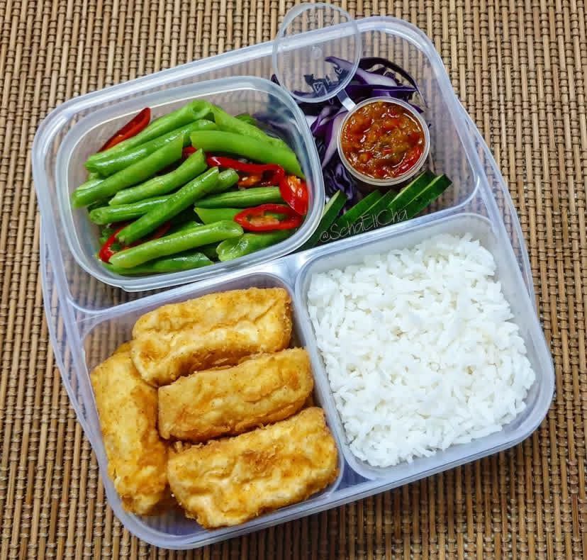 4. Bento Box Tahu Goreng dengan Sayur Campur
