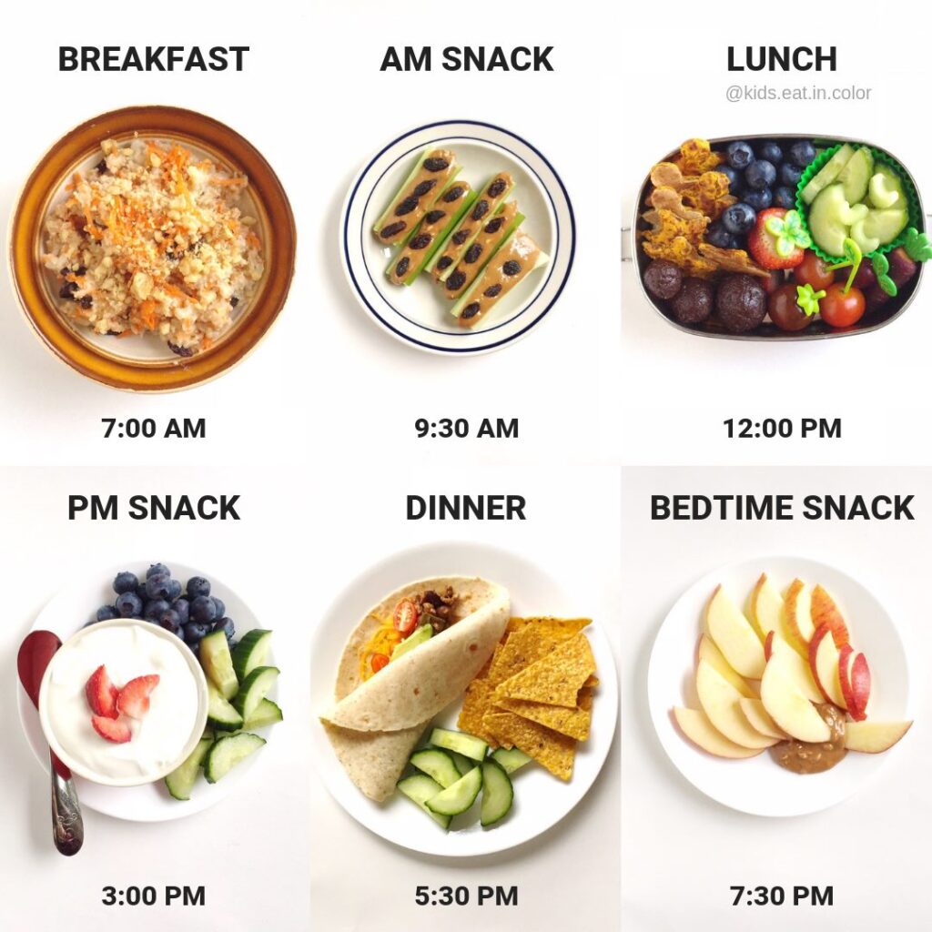 Tetapkan waktu makan dan snek yang tetap setiap hari. Elakkan memberi snek atau minuman manis terlalu dekat dengan waktu makan.