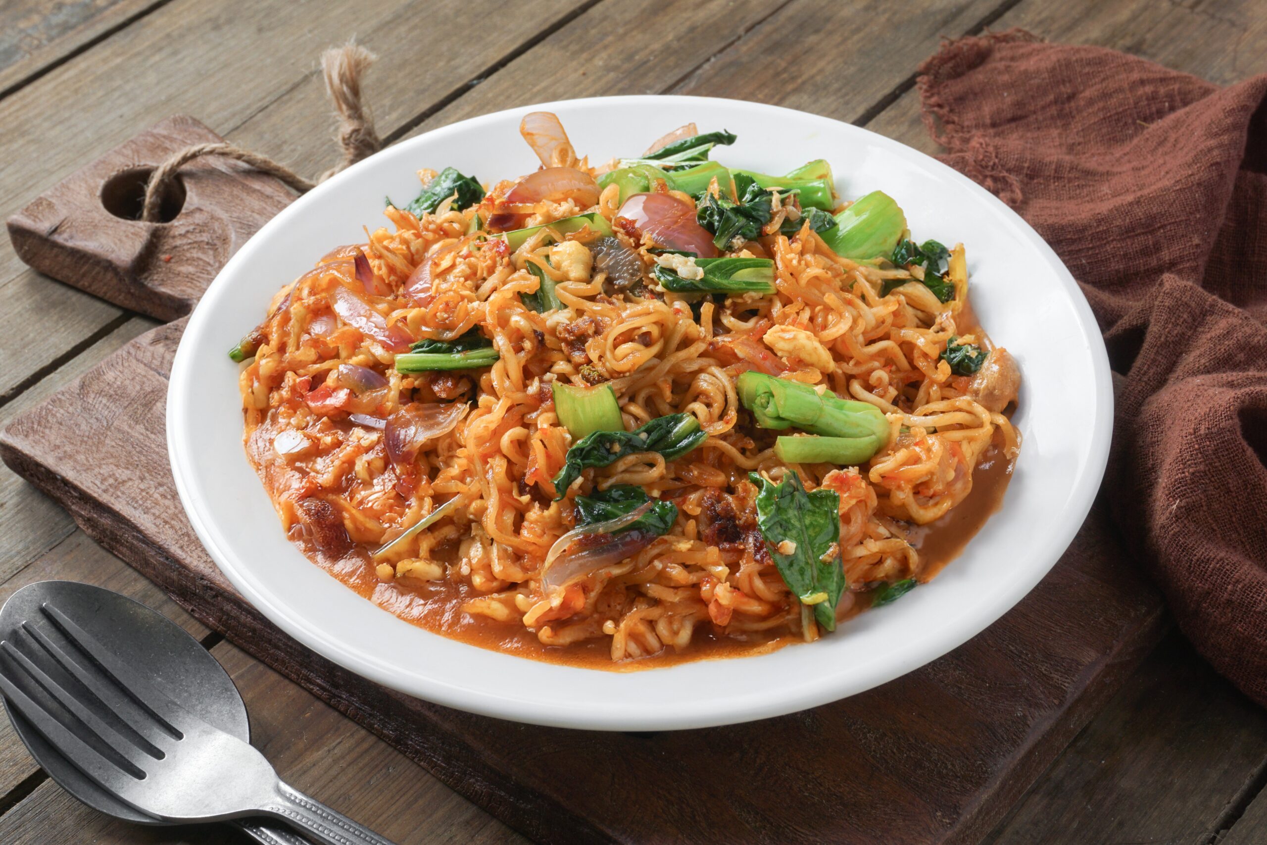 - Mi whole wheat atau soba – lebih tinggi serat dan protein